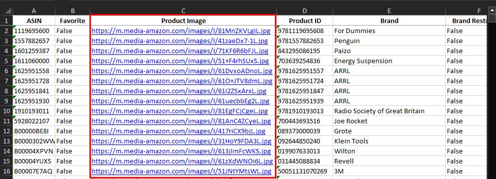 By popular request, we added a new column to the data grid for Product Image URL. This column can be added from the Column Chooser and links to the full size Amazon product image. When exported to Excel, the full URL of the Amazon product image will be included for each ASIN.