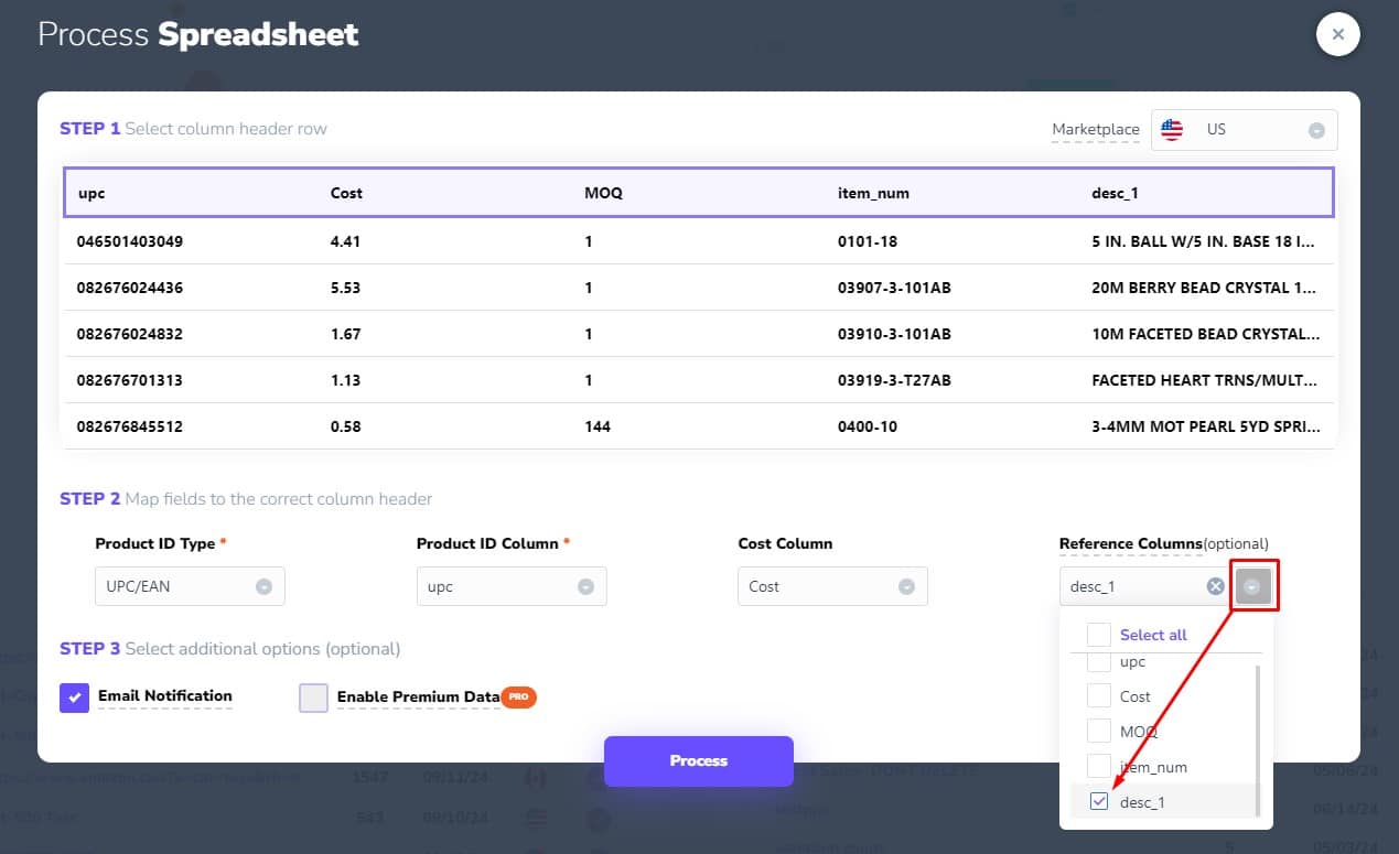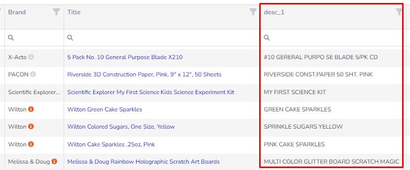 Add a Reference Column to your results with the product name from your supplier’s price sheet . This column will be appended to your results and will allow you to cross reference the result’s Amazon Title to the original product name from your supplier’s spreadsheet. This allows you to spot products that don’t match based on different product names.